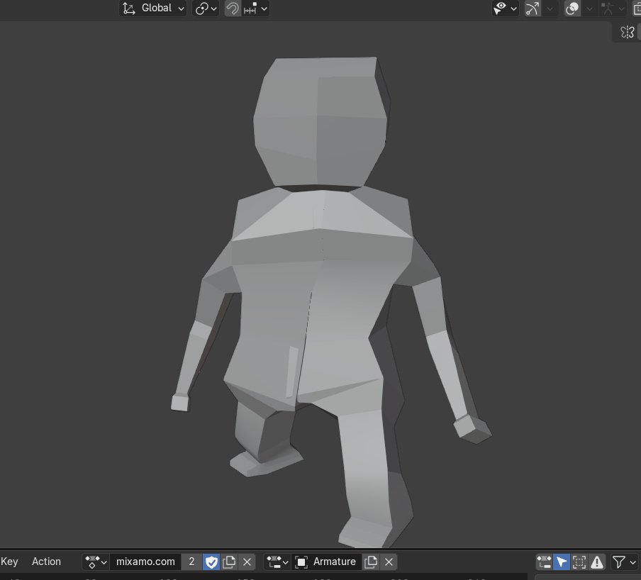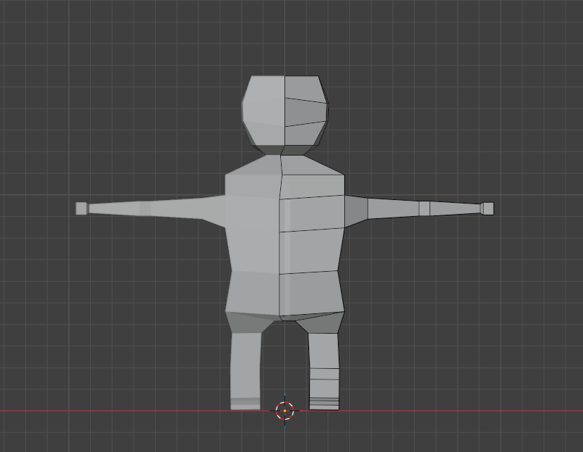 I had two goes at this. I decided to start all over again because I did a terrible job on my first attempt and couldn't figure out how to fix the rigging and animations so I started from scratch. Starting with a basic cube, I transformed the cube into a torso by moving, scaling, and rotating faces/vertices/edges. Arms and legs were created by making loop cuts and further transforms, and slowly, over quite a while, it somehow turned into something resembling a cartoony human. With a very big head!